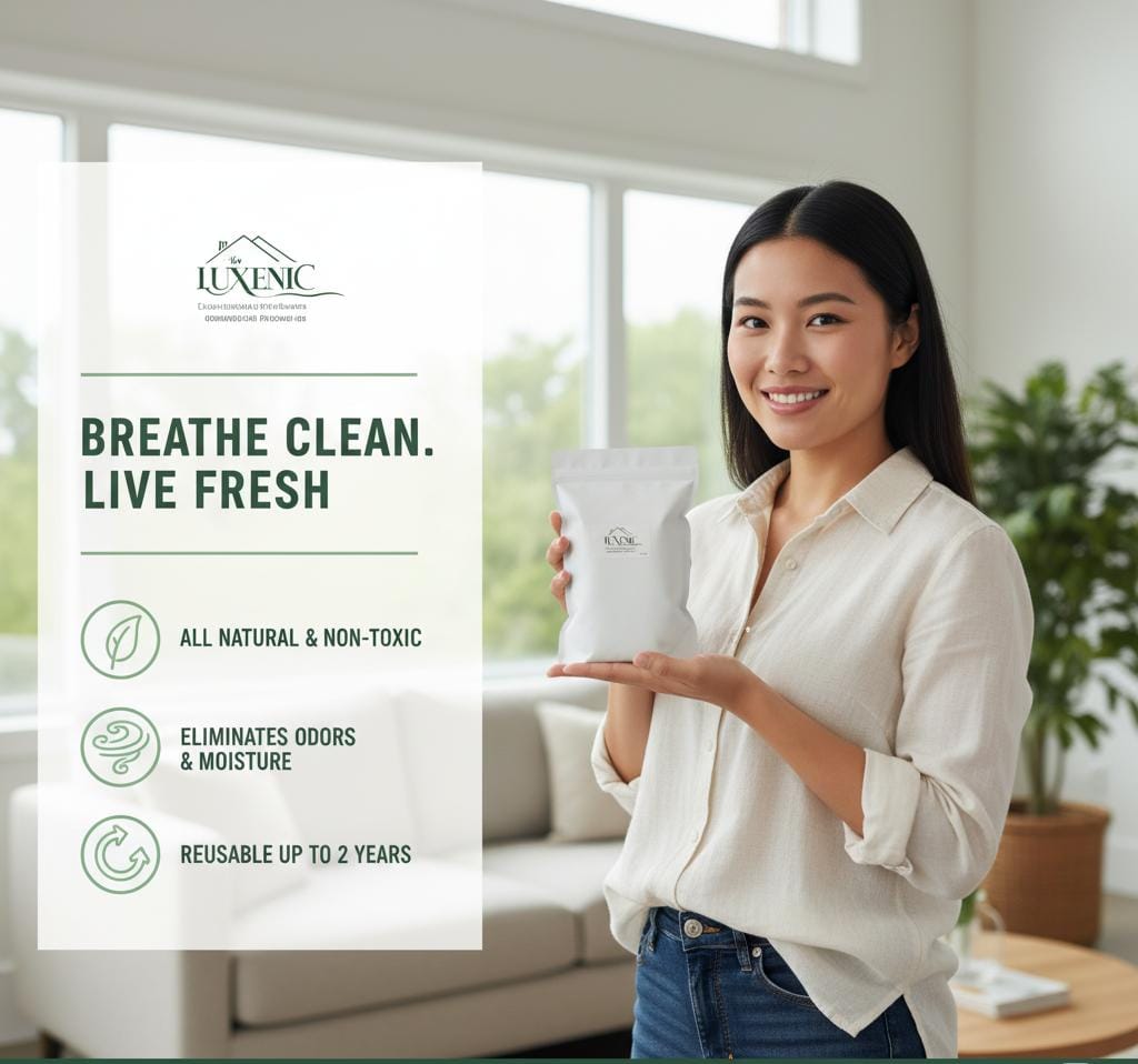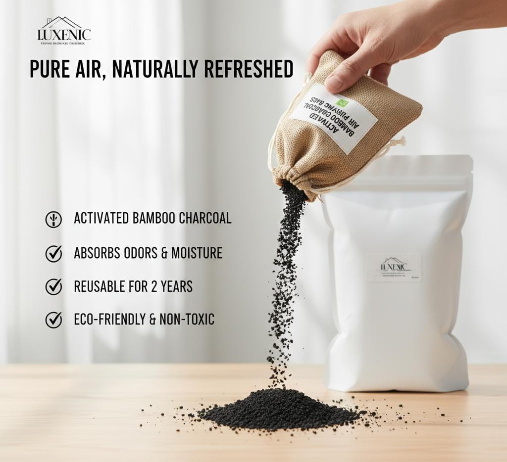 At Luxenic, we create eco-friendly solutions for healthier living. Our Bamboo Charcoal Air Purifier naturally removes odors, toxins, and moisture — without chemicals or electricity. Compact, reusable, and safe for families & pets, Luxenic stands for purity, sustainability, and freshness. Breathe fresh, live pure with Luxenic.